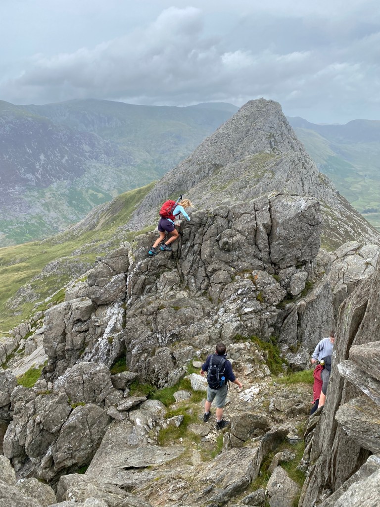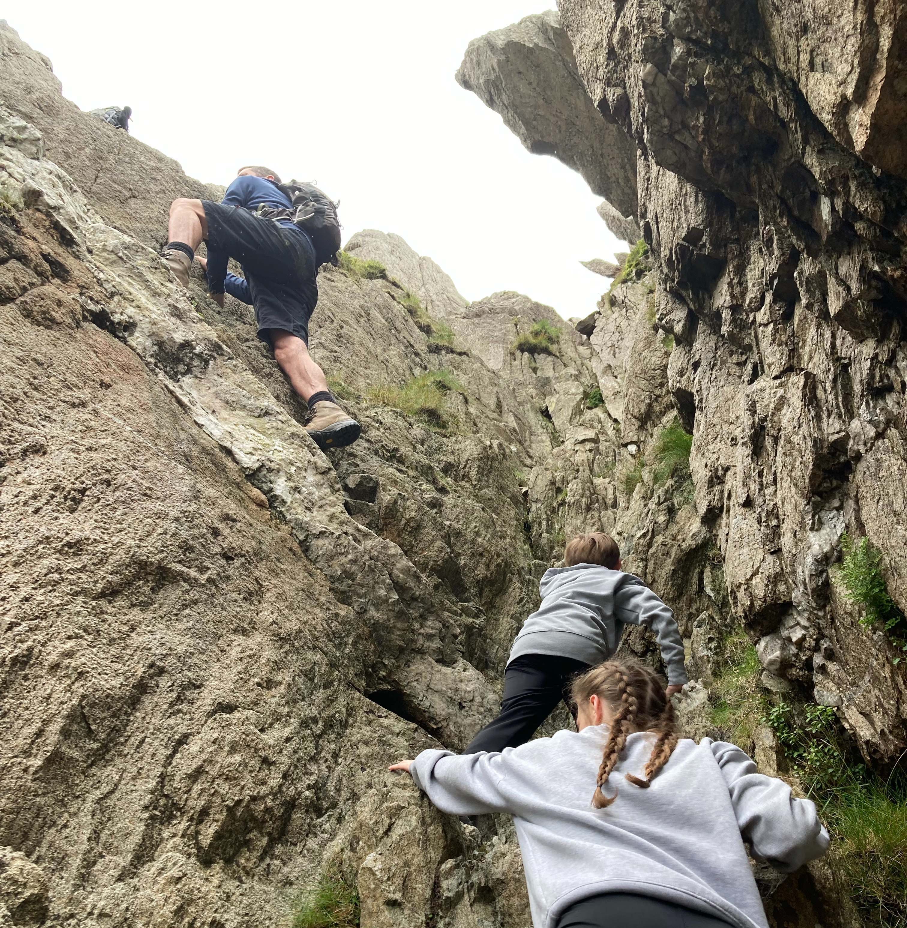 Having said that, I’m a 5ft woman, I didn’t need any help from my fellow climbers to get up or down any of the rock steps, and nor did my 13 yr old son who was a good few inches shorter than me and my daughter. The pic above of ‘Sinister Gully’ was easier than some of the bits where you have to climb back down again. Take a look at some Bristly Ridge videos if you’re not sure.