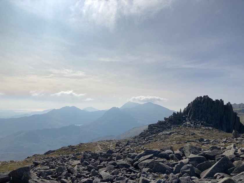 The Glyder Fach summit is a big pile of stones, you can clamber up to make sure you have reached the very top or just keep walking if it’s busy. The views are amazing if you get lucky. The actual summit looks like a cairn made by giants
