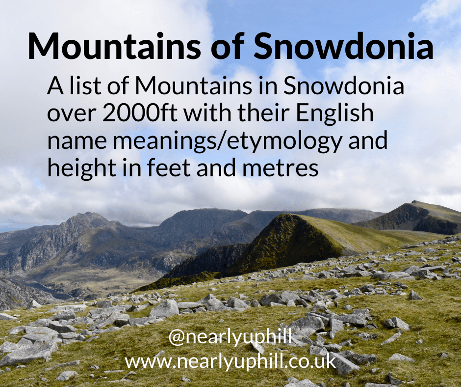 When you walk or scramble up a mountain in Eryri (Snowdonia), it’s fascinating to understand the meaning of its name. In this post, you’ll find a list of all the Eryri / Snowdonia mountains over 2000 feet (often called Nuttalls). You’ll also find a little bit about the meaning of their name. Perhaps the most interesting is Yr Wyddfa (Snowdon) itself which means Grave! Click here to download a free list of Snowdonia Peaks