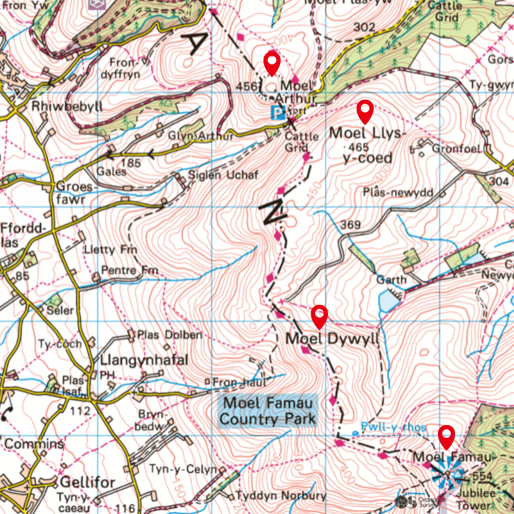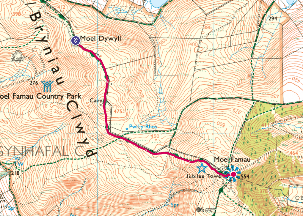 I am yet to walk a circular route up to Moel Dywyll from this parking spot. On my OS map it looks like there are a few options. This is the map I am using (both on and offline)