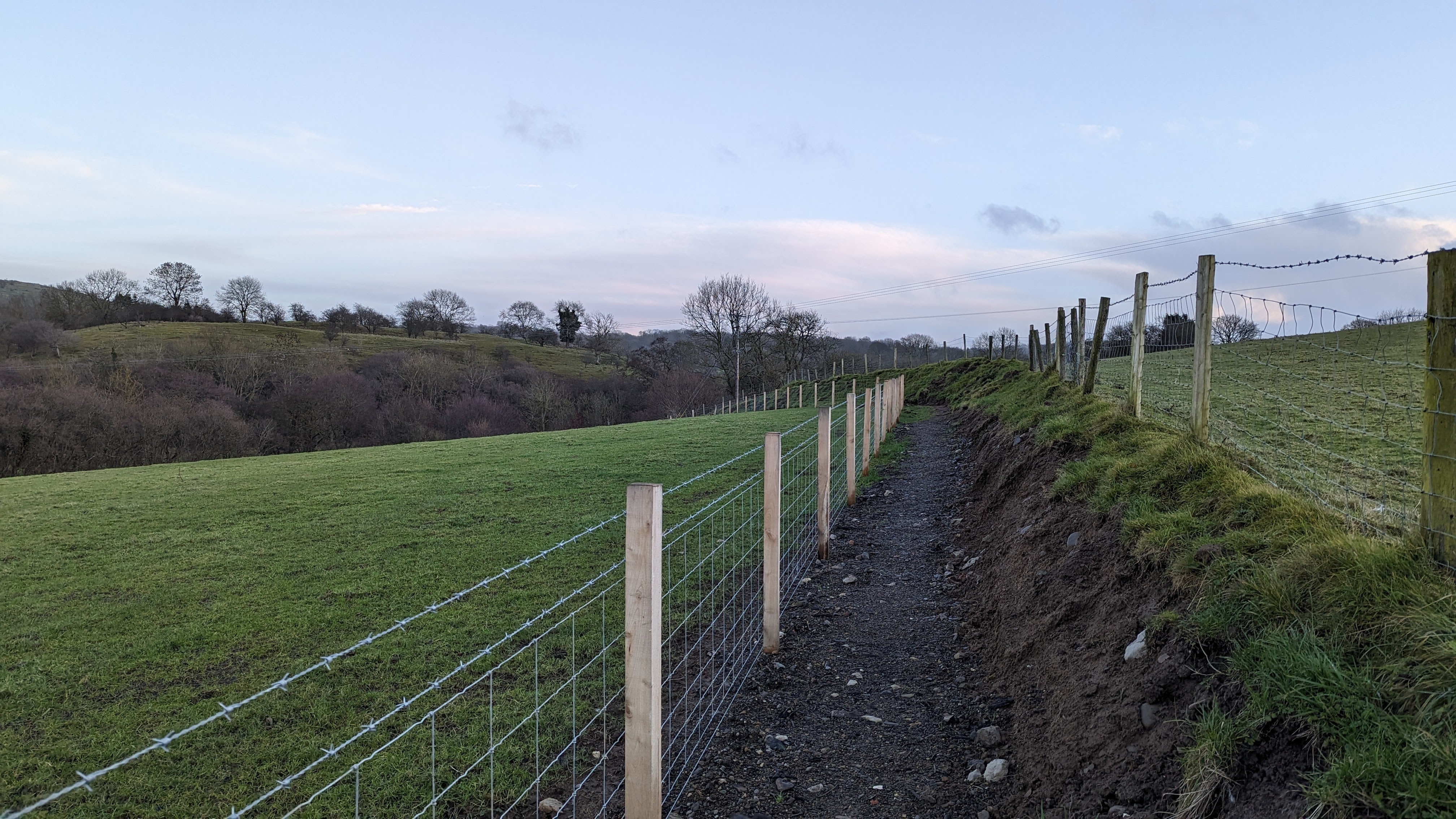 The footpath in the field has been rerouted so that it now follows the edge of the field and tracks along the stream Afon Alyn which is more pleasant than cutting across the fields on the official path. I was rather impressed with it as far as footpath reroutes go, they must have invested a lot of money on fencing and you now get to enjoy the stream too.