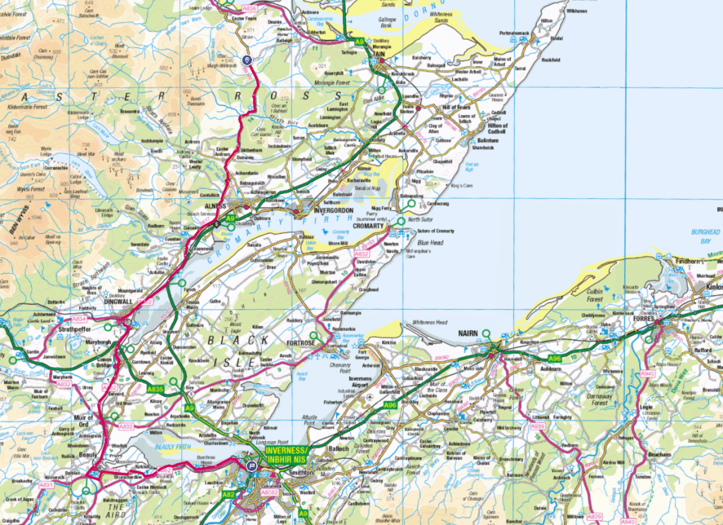 Our next stage was Dingwall, the chief town in the county of Ross, and at the extreme end of the Cromarty Firth, which was only six miles distant. We had a lovely walk to that town, very different from the lonely moors we had traversed earlier in the day, as our road now lay along the very edge of the Cromarty Firth, while the luxuriant foliage of the trees on the other side of our road almost formed an arch over our way. The water of the Firth was about two miles broad all the way to Dingwall, and the background formed by the wooded hills beyond the Firth made up a very fine picture. We had been fully prepared to find Dingwall a very pretty place, and in that we were not disappointed.