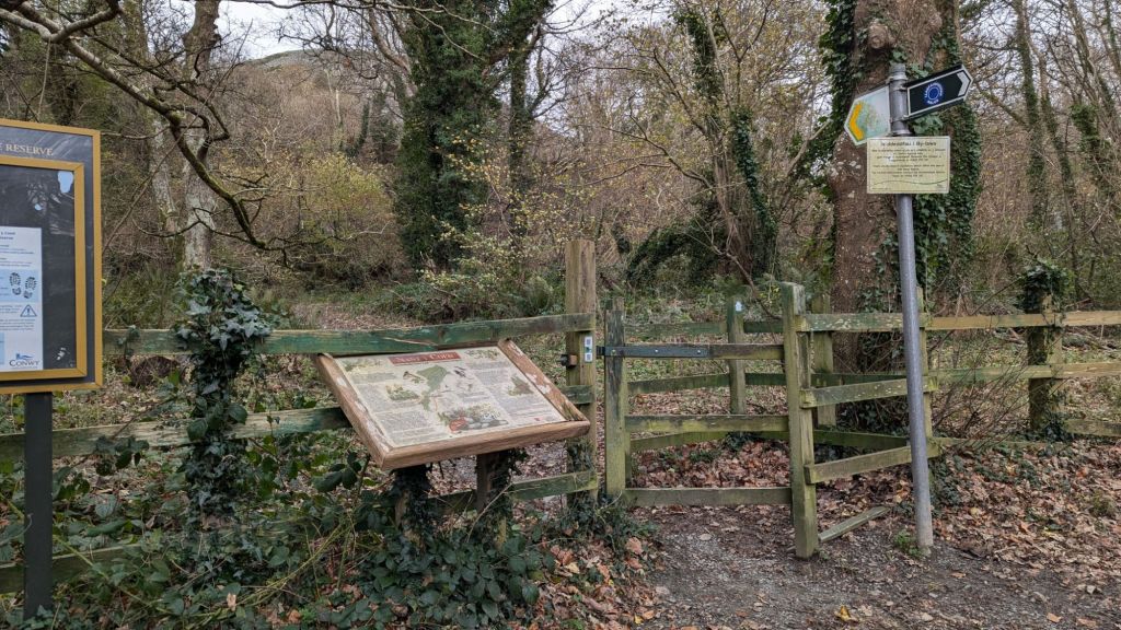 The circular path is well signposted. It guides you up through the woodland at the foot of the ancient settlement and hillfort, Dinas.